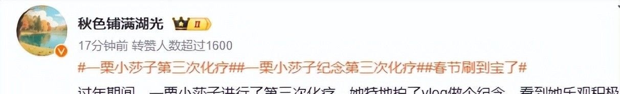 一栗小莎子的抗癌征程仍在延展,第三次化疗只是这场漫长“副本挑战”中的一个章节。相信这位眼里有光、心底有火、脚步坚定的姑娘,终将跨越所有关卡,带着熟悉的笑容重返镜头中央。